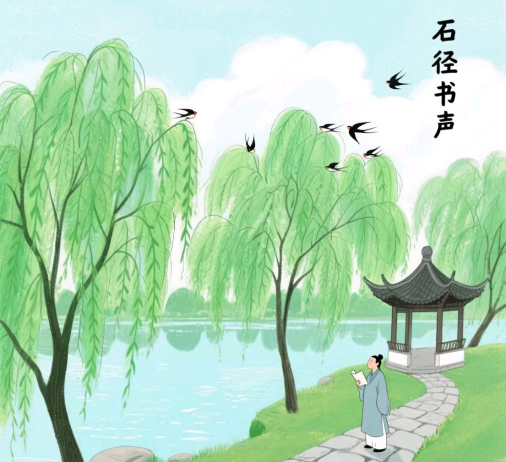 柳梢青·湖畔书声