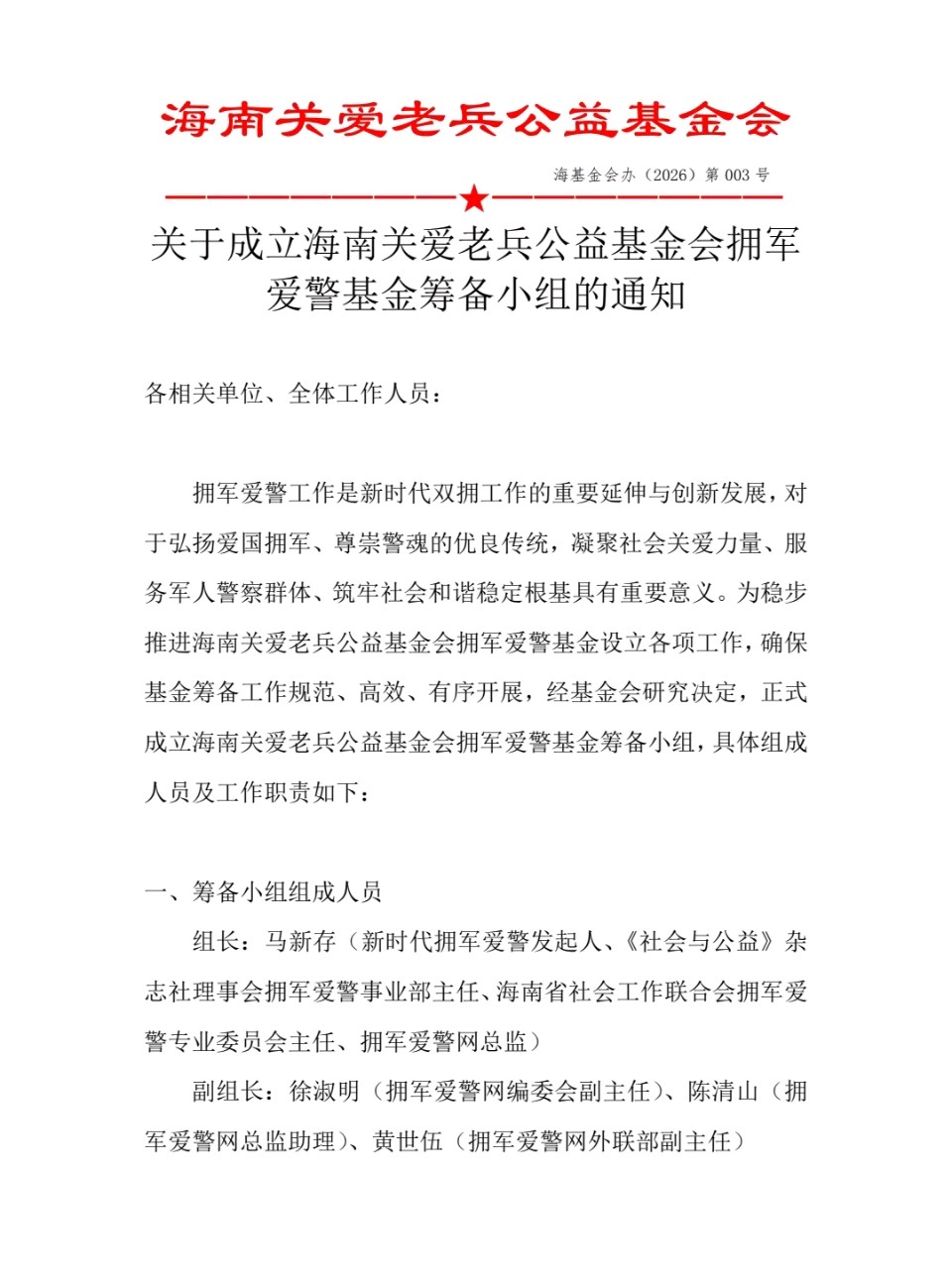 赓续红色血脉 守护家国平安——海南关爱老兵公益基金会拥军爱警基金筹备小组正式成立