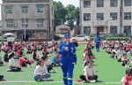 桃江县新华救援队在武潭镇二所学校开展青少年防溺水演练