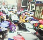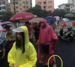 冬雨放学的校门口