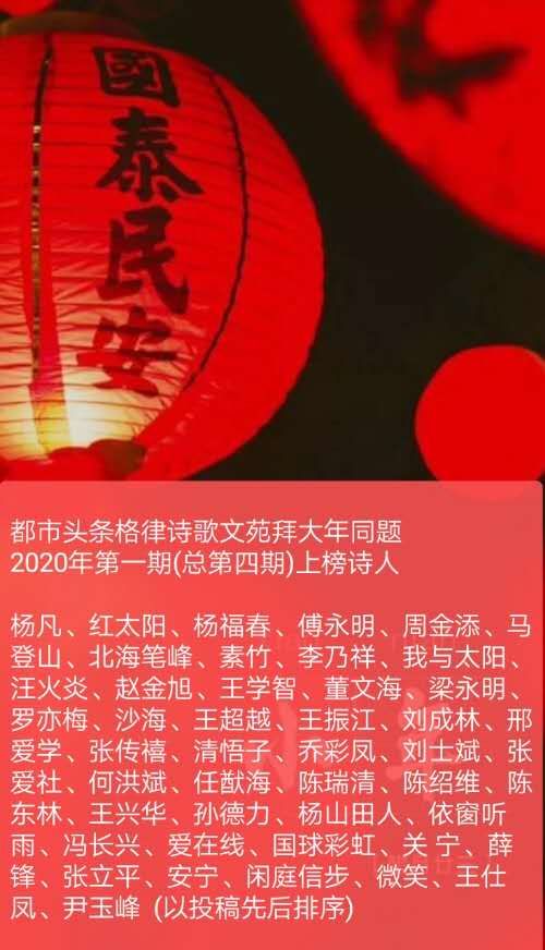 都市头条格律诗词文苑拜大年同题 2020年第一期(总第四期)