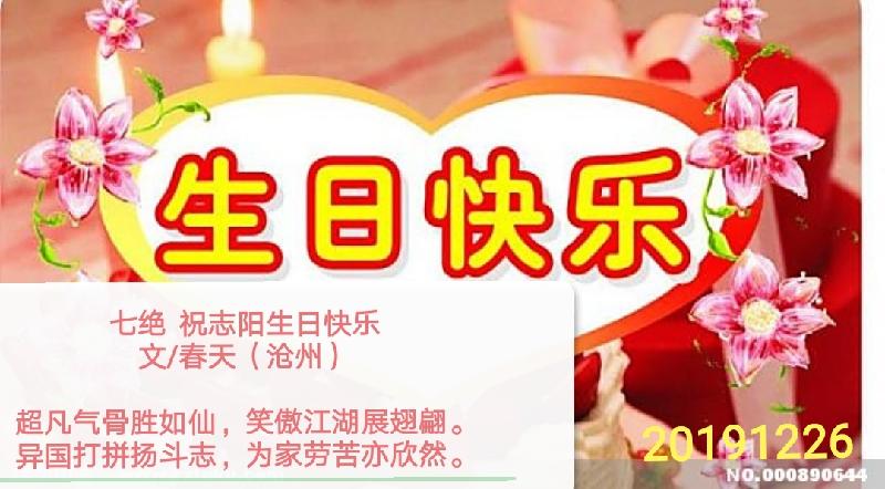 七绝 祝志阳生日快乐 文/春天(沧州)