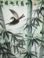 古风.以藏头诗咏国画大家周宇安老师号常乐居士岭南春花鸟系列作品之三~竹荫觅趣图 竹荫觅趣 吕寒雨
