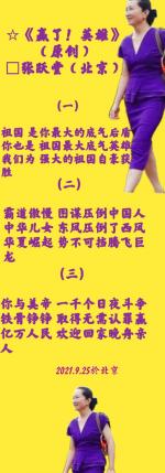 正义的赞歌 一一欣闻孟晚舟女士平安回国 徐瑞昌
