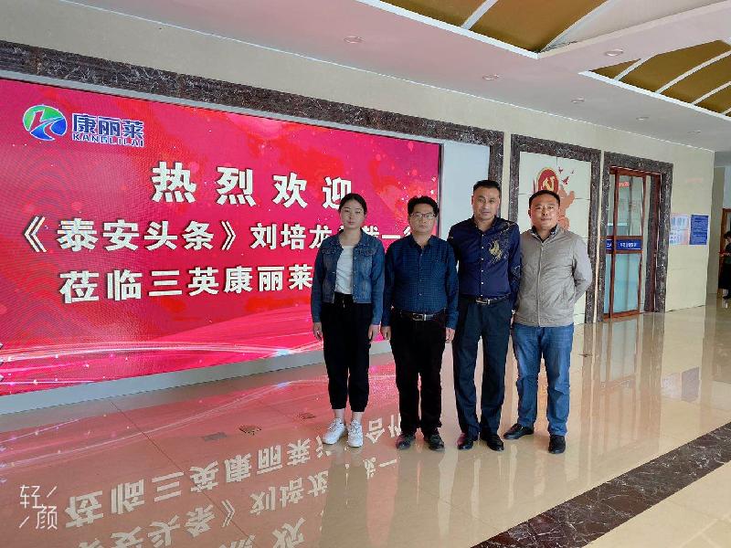 《泰安头条》刘培龙总裁一行人2020年4月29日上午走进三英康丽莱驻泰城总部进行参观并与张涛总经理进行洽谈战略合作事宜