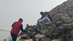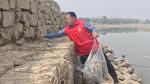 巩义爱心桥志愿者沿河捡拾垃圾 迎接世界地球日
