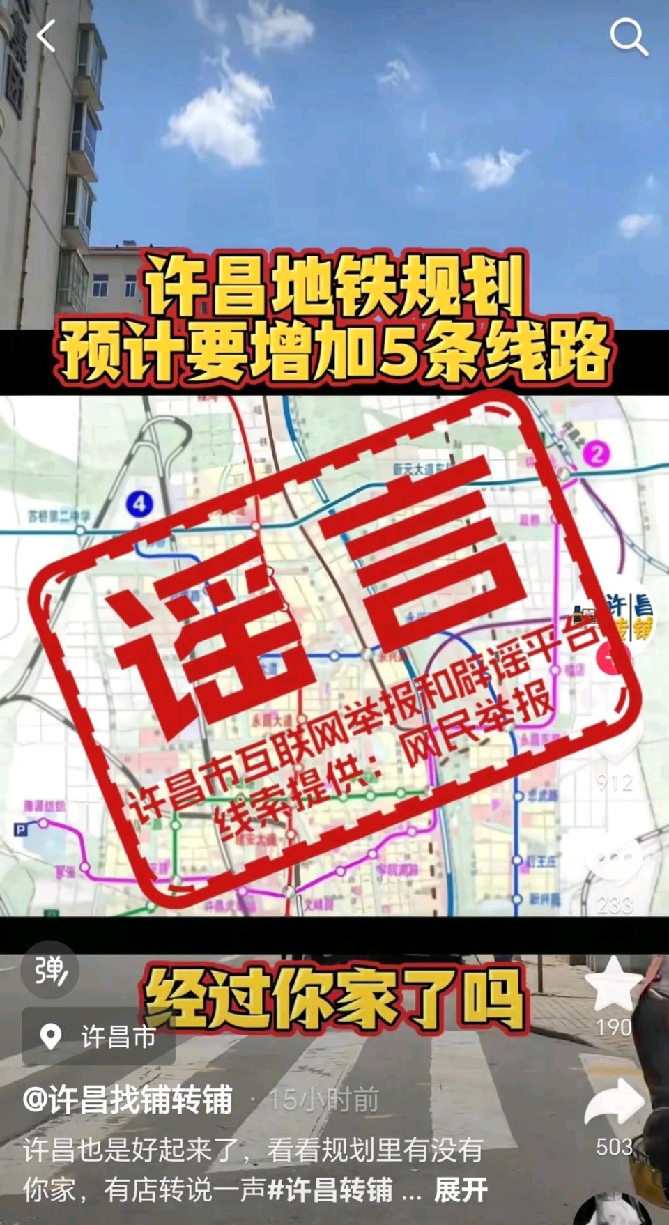 河南许昌:辟谣:“许昌地铁规划预计要增加5条线路”为不实信息