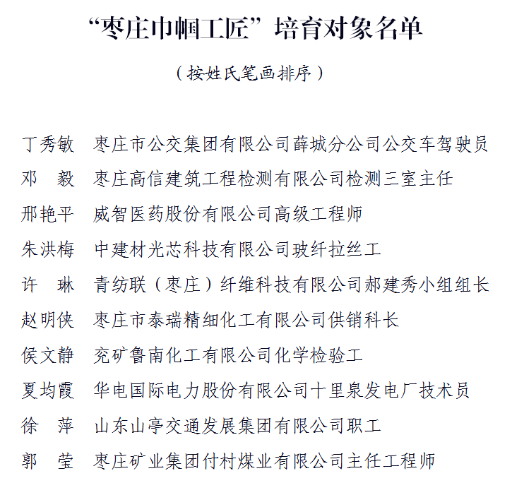 重磅!首届“枣庄巾帼工匠”名单发布