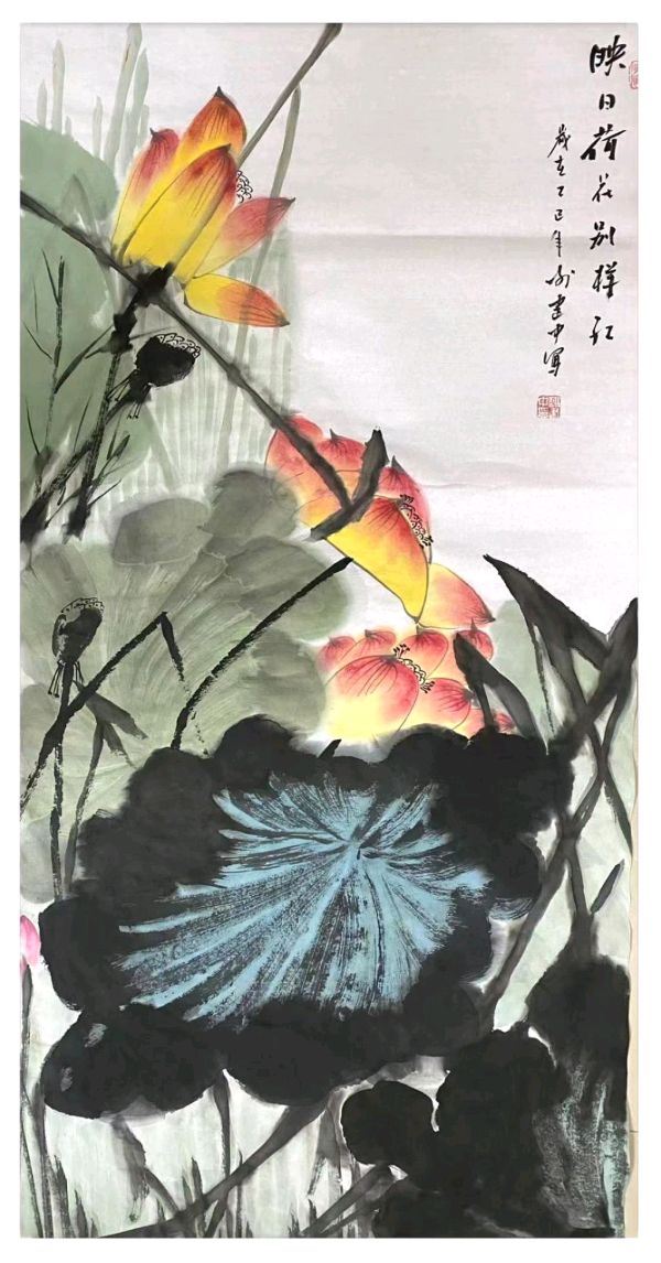 河南许昌:谢建中国画作品《映日荷花别样红》获得书画艺术大赛特等奖
