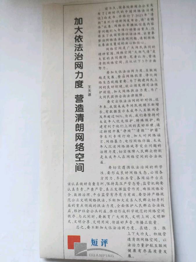 王天源短评:加大依法治网力度 营造晴朗网络空间