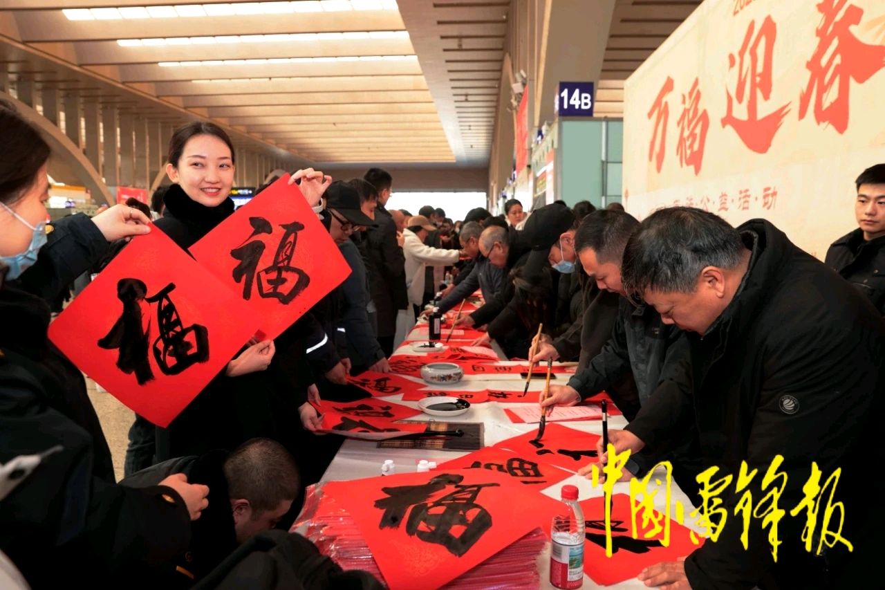 石家庄站举办“万福迎春”书法公益活动