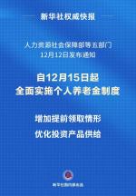 12月15日起,个人养老金制度推开至全国