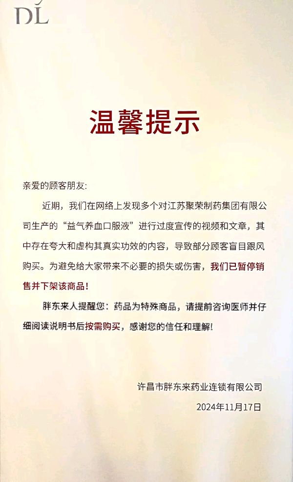 河南许昌:胖东来发布下架提示