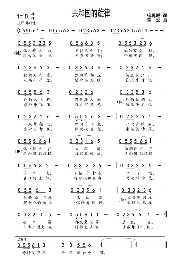 徐再城作词、董宏作曲的原创歌曲《共和国的旋律》