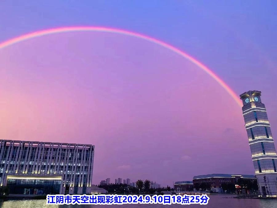 江阴市地区虹、霓和晚霞气象三奇观同时跨天穹