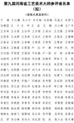 第九届河南省工艺美术大师评选参评者名单公示来源