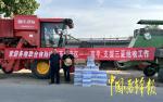 正定县高平村对来自各地的收割机团队进行慰问