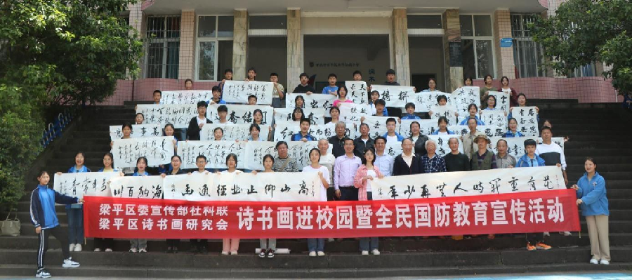 梁平区诗书画研究会开展诗书画进校园暨全民国防教育宣传活动