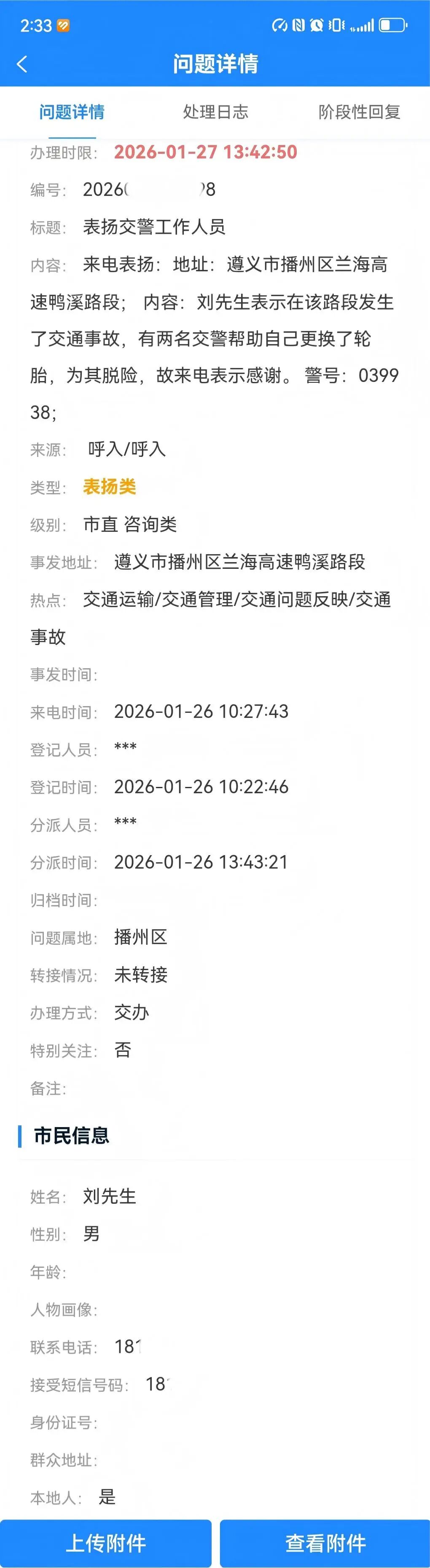 高速二大队又有人被“市长热线”点名表扬了!