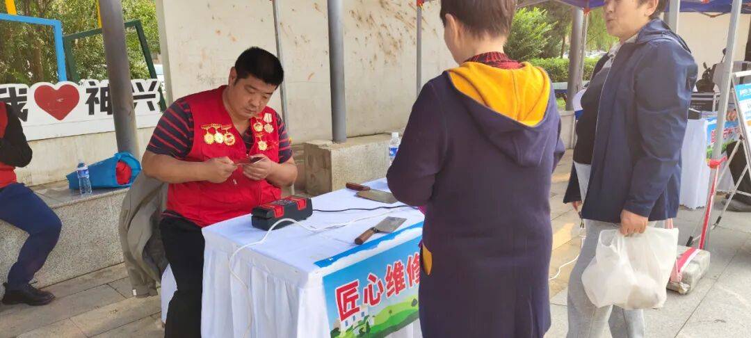 一家人志愿者走进社区,磨刀维修暖人心