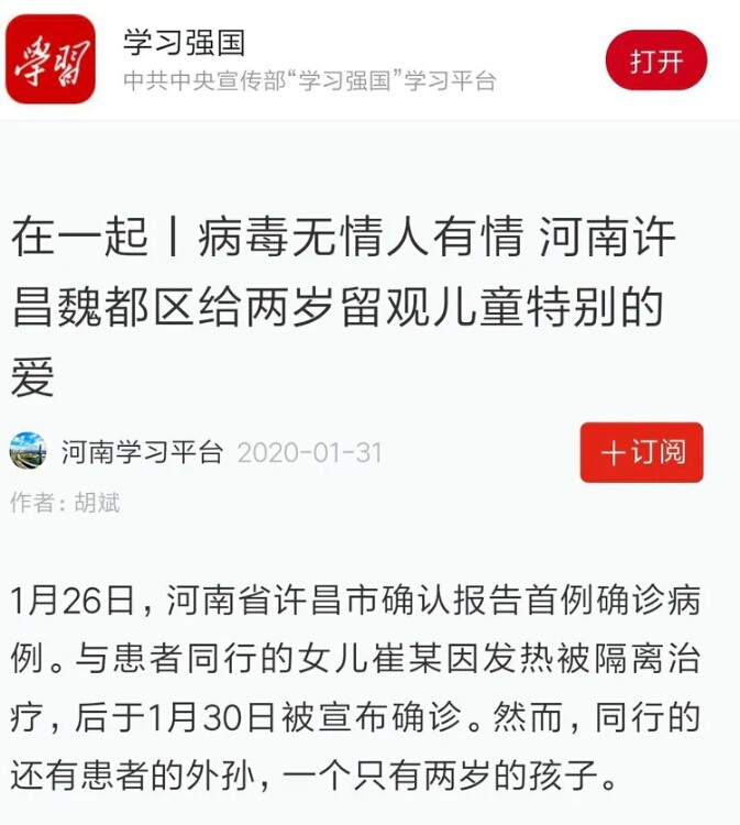 中共中央宣传部“学习强国”报道河南省许昌市魏都区党员干部抗击新型冠状病毒感染肺炎疫情防控的感人事迹