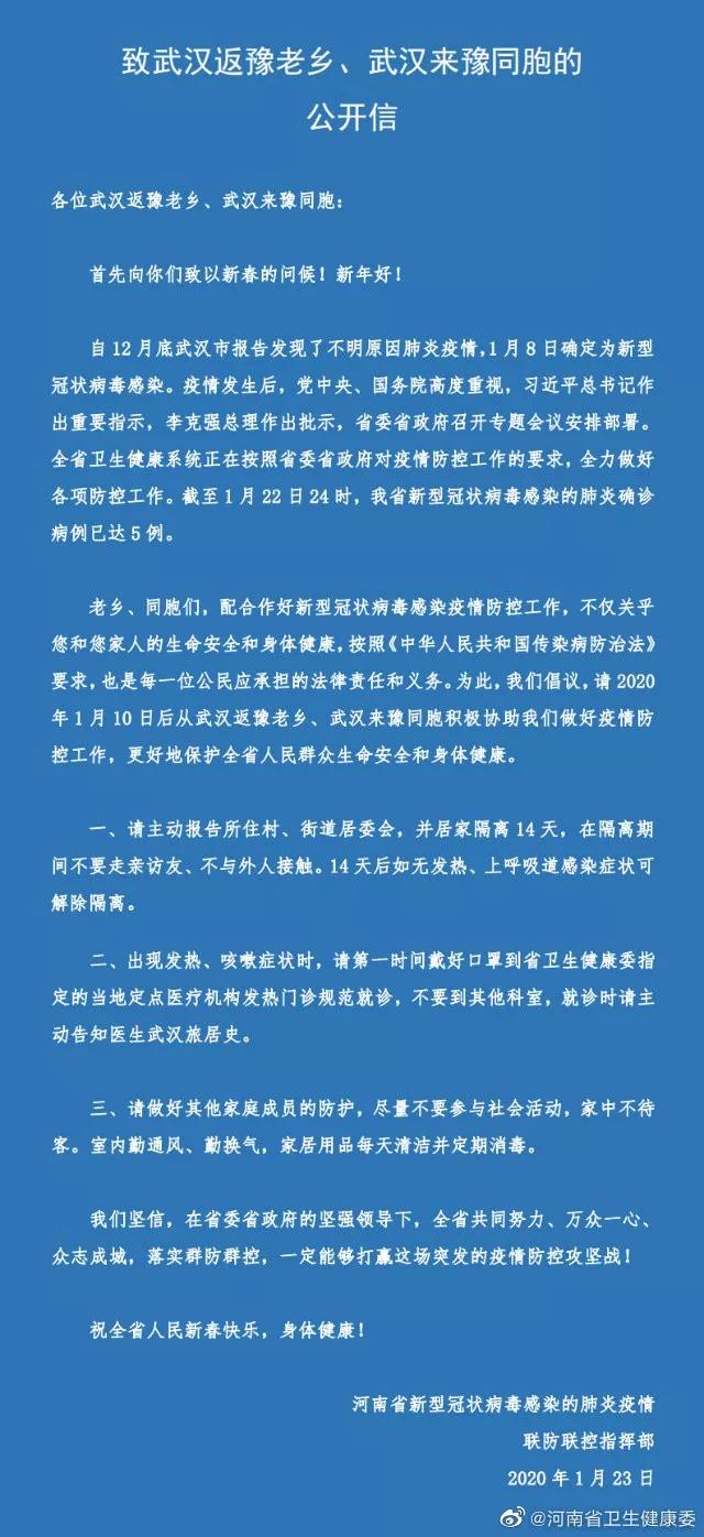 致武汉返豫老乡、武汉来豫同胞一封公开信