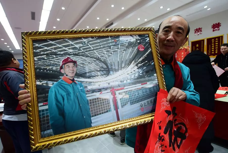 挥毫泼墨送祝福 最美微笑迎新春—— 全总、市总工会慰问冬奥工程一线建设者