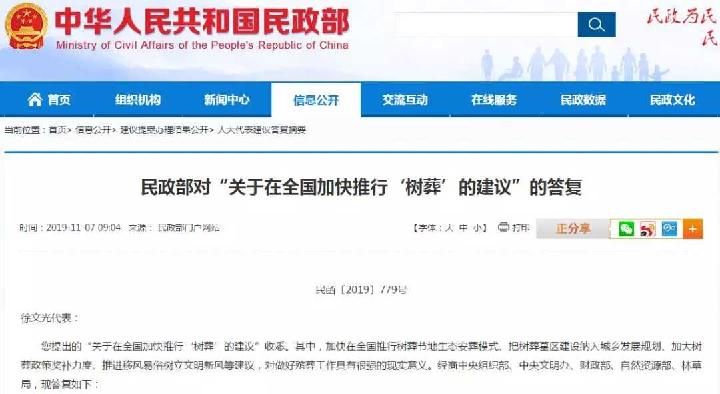 建议加快树葬!将对树葬,土葬区遗体深埋不留坟头进行奖补