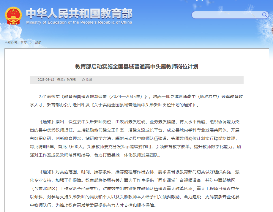教育部通知!首批600名领军教师将辐射带动县域教育发展