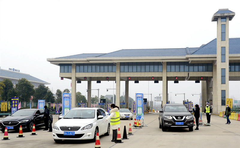 大年初一,武黄高速泽林站车流滚滚,鄂州南大门“守门神”剪影