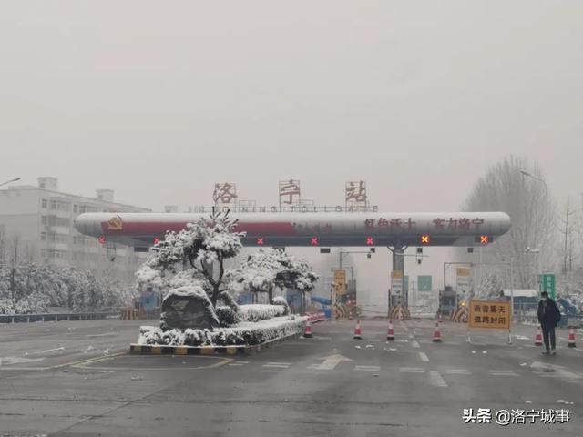 洛宁高速收费站因降雪道路结冰禁止通行!