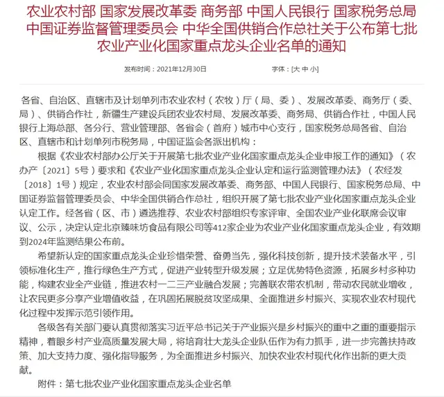 喜讯!湖北富农食品工业园获“农业产业化国家重点龙头企业”称号