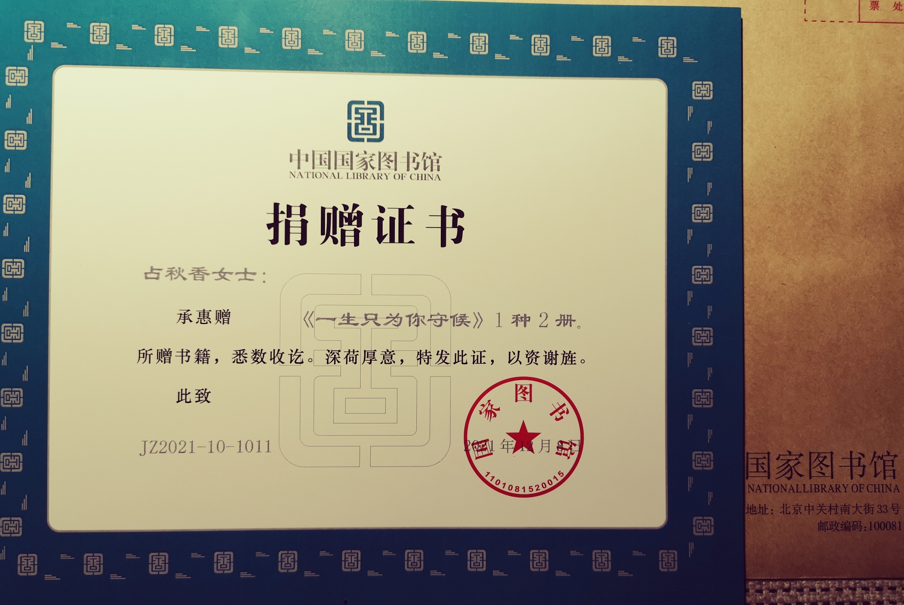 重磅//《一生只为你守候》诗集被国家图书馆收藏