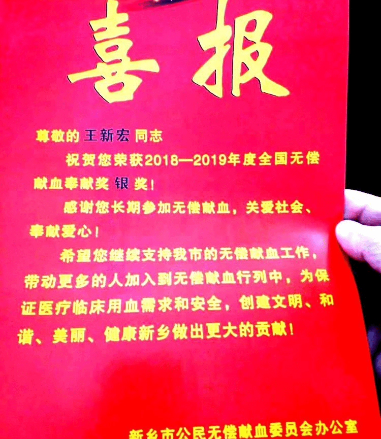 河南卫辉:他19年无偿献血8400毫升