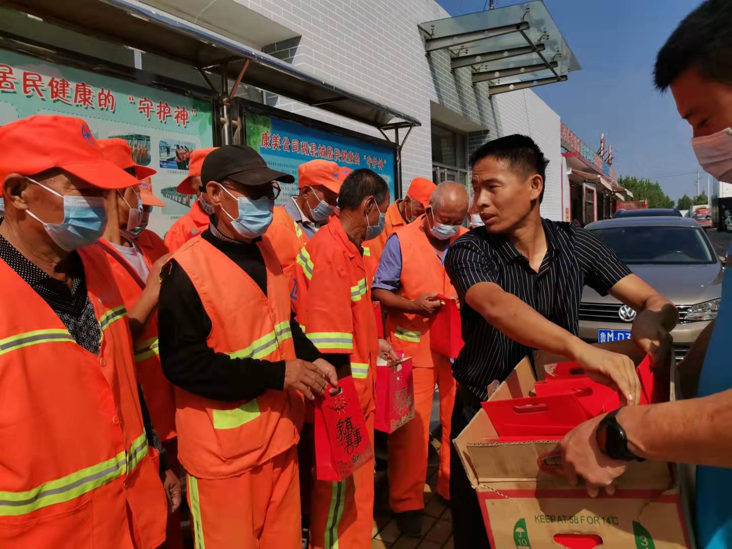 阳信:爱心人士中秋节给环卫工送月饼牛奶