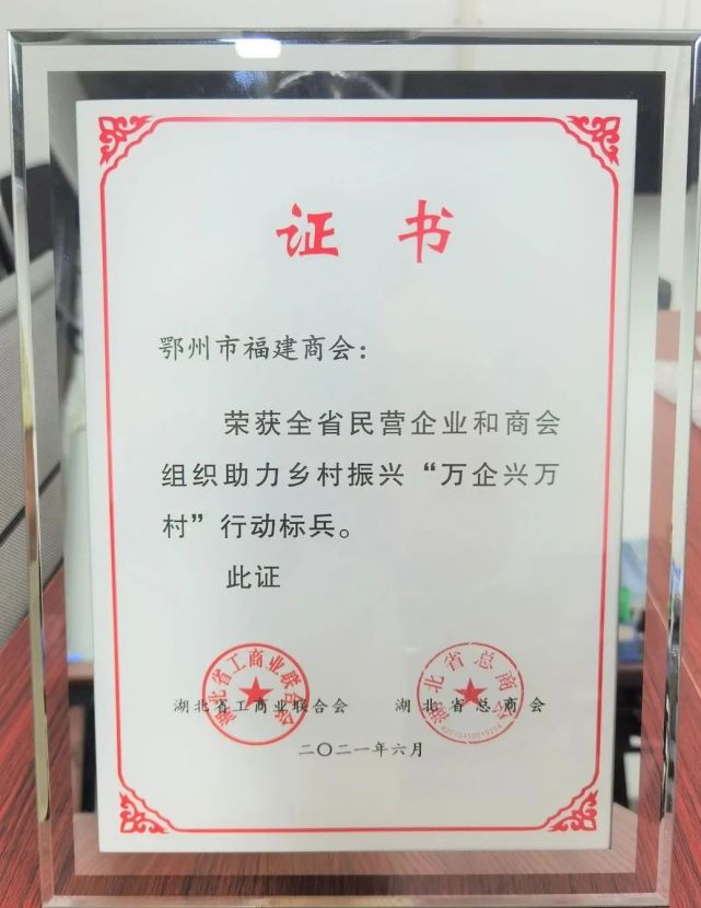 鄂州市福建商会喜获全省民营企业和商会组织助力乡村殊荣