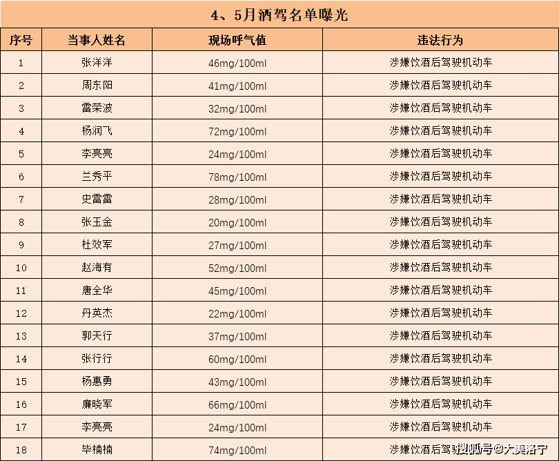 醉驾入刑十周年——洛宁县四、五月酒驾、醉驾名单曝光!