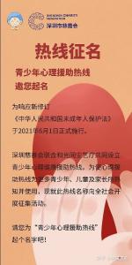 深圳“青少年心理健康援助热线”邀您来起名