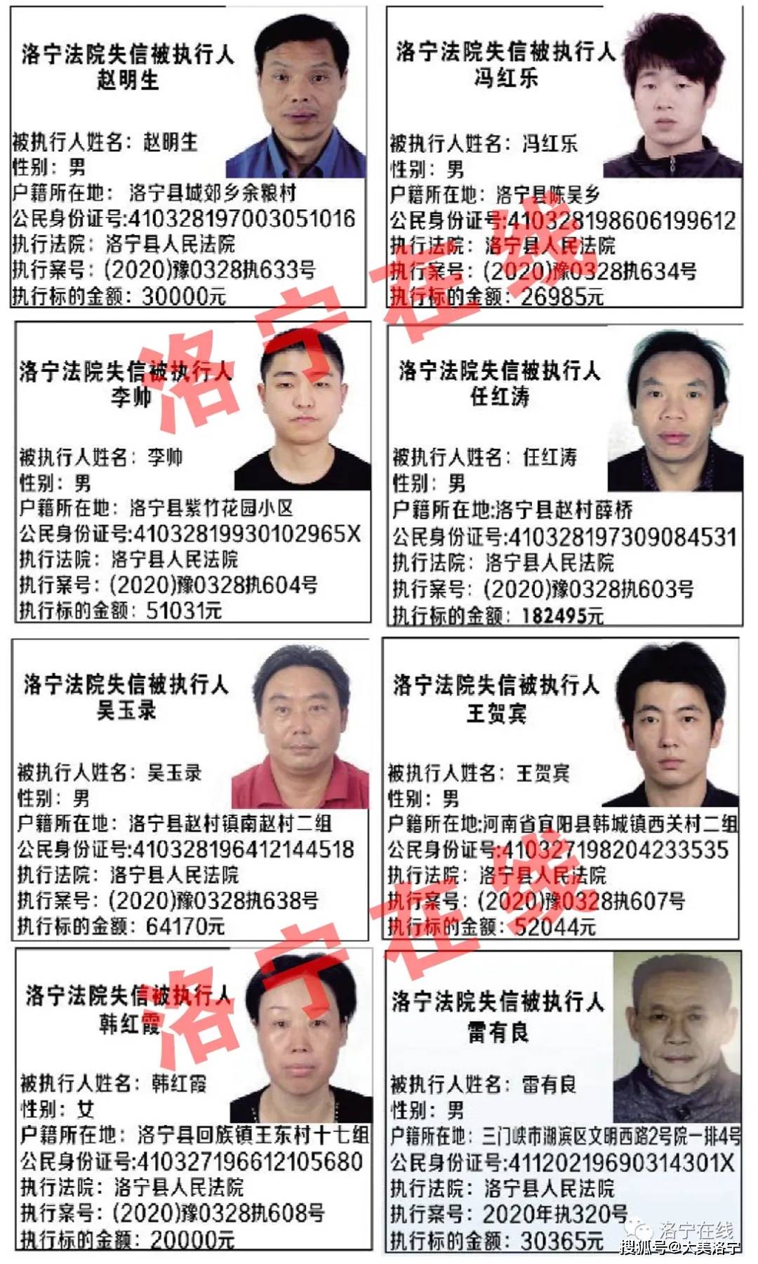 洛宁法院曝光失信被执行人名单,和这些人打交道要注意!