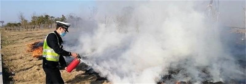 道路绿化带起火 执勤交警变身“消防员”合力灭火
