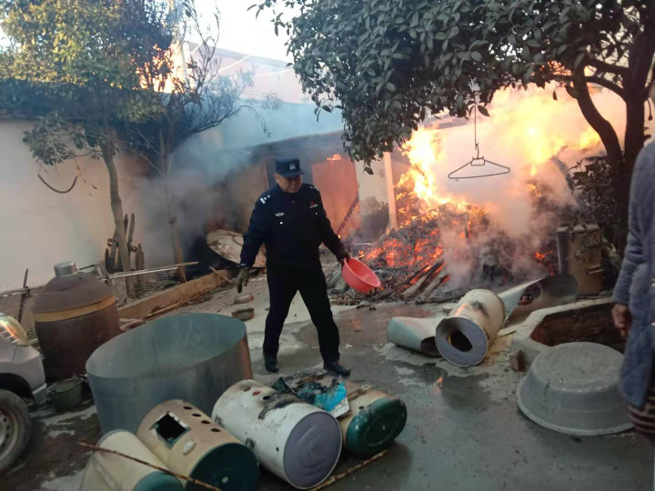 冰天雪地,民警凿冰取水灭火