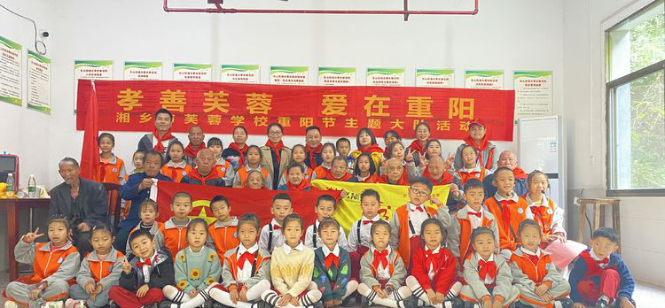 礼孝重阳节:湘乡芙蓉学校少先队员“敬礼”东山敬老院老人