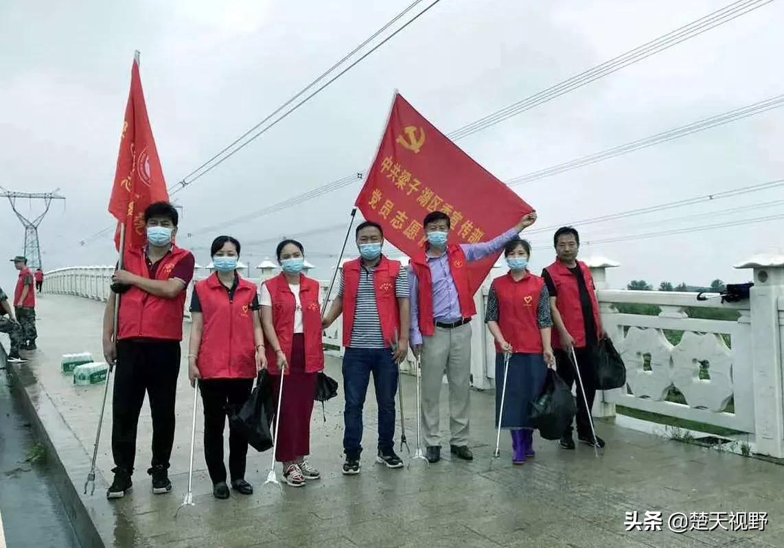 鄂州市梁子湖区党员志愿者冒雨参加护湖活动