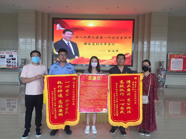 河南辉县法院受委托执结案件 当事人赠送锦旗以表谢意
