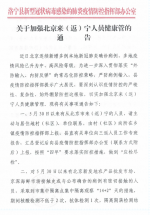 关于加强北京来(返)宁人员健康管理的通告
