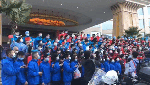 “翰墨送福,马跃迎春”。写春联,送温暖。公益活动。
