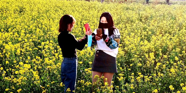 河南卫辉:出现两条流油菜花的河