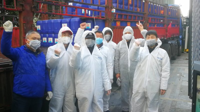 武汉美德志愿者运送消毒水为抗击疫情助力