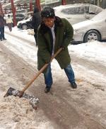 一家人志愿者自发扫雪除冰,温暖关怀市民