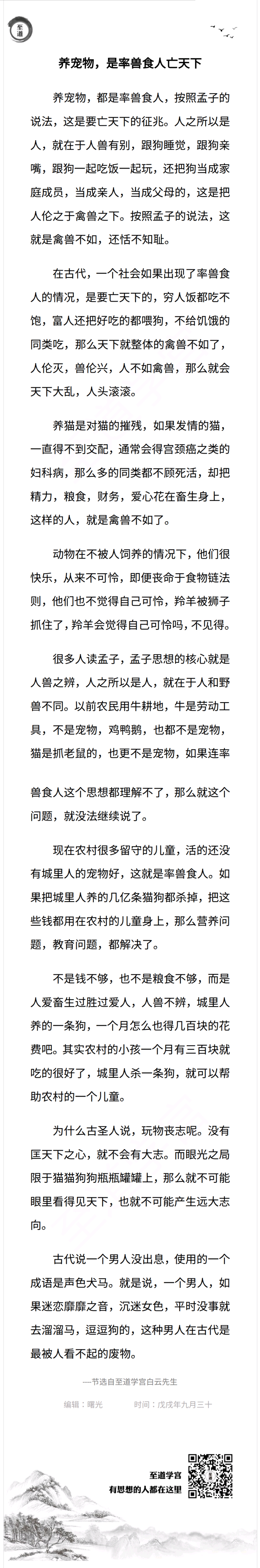 养宠物,是率兽食人亡天下